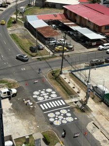 El domingo 15 de marzo, las calles 4ta y 5ta en Parque Lefevre fueron escenario de una intervención significativa enfocada en la seguridad vial y el bienestar comunitario. Se realizó la pintura del paso de cebra, acompañada de vistosos girasoles que ahora embellecen el entorno urbano.